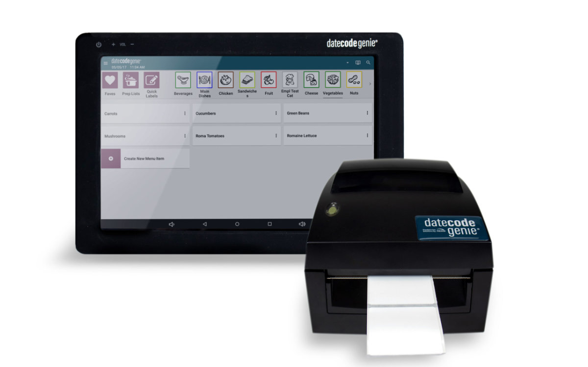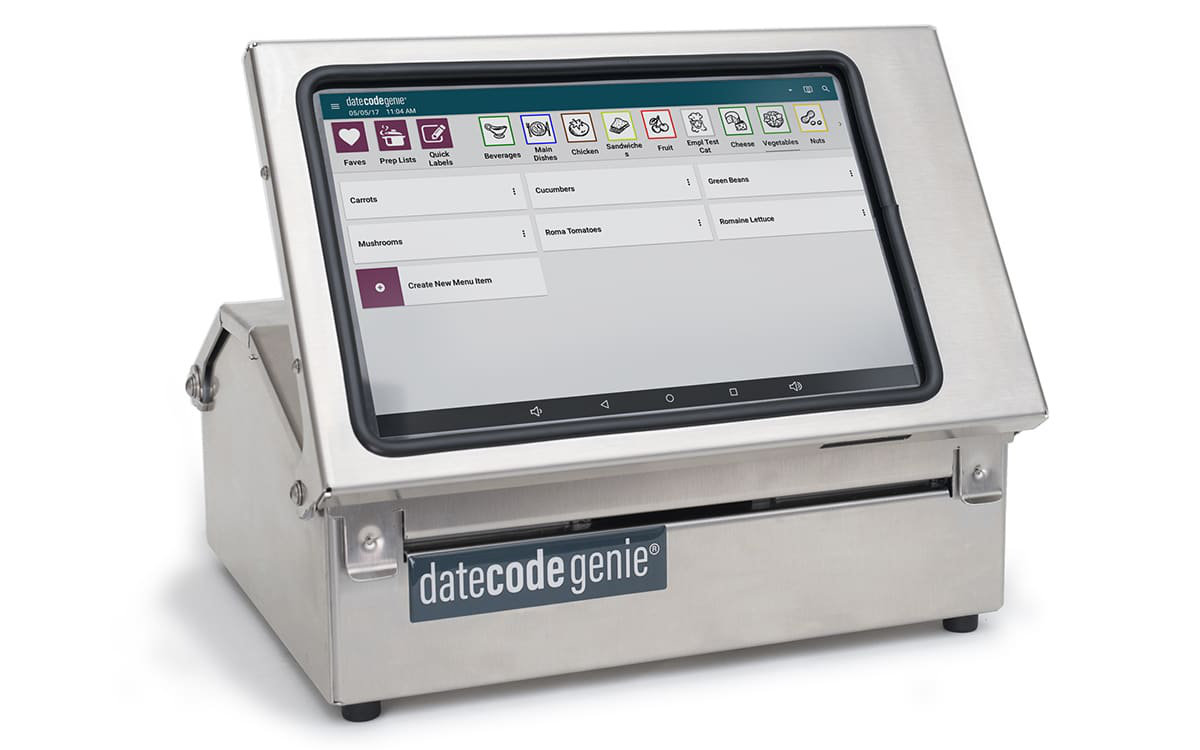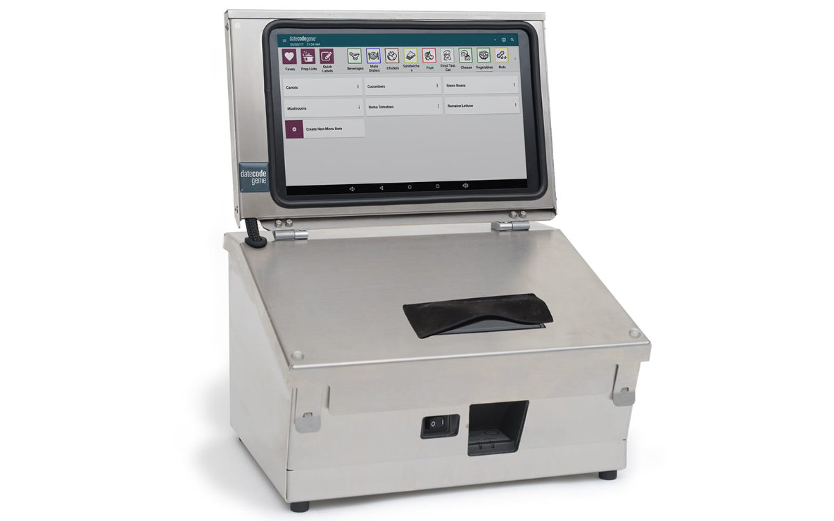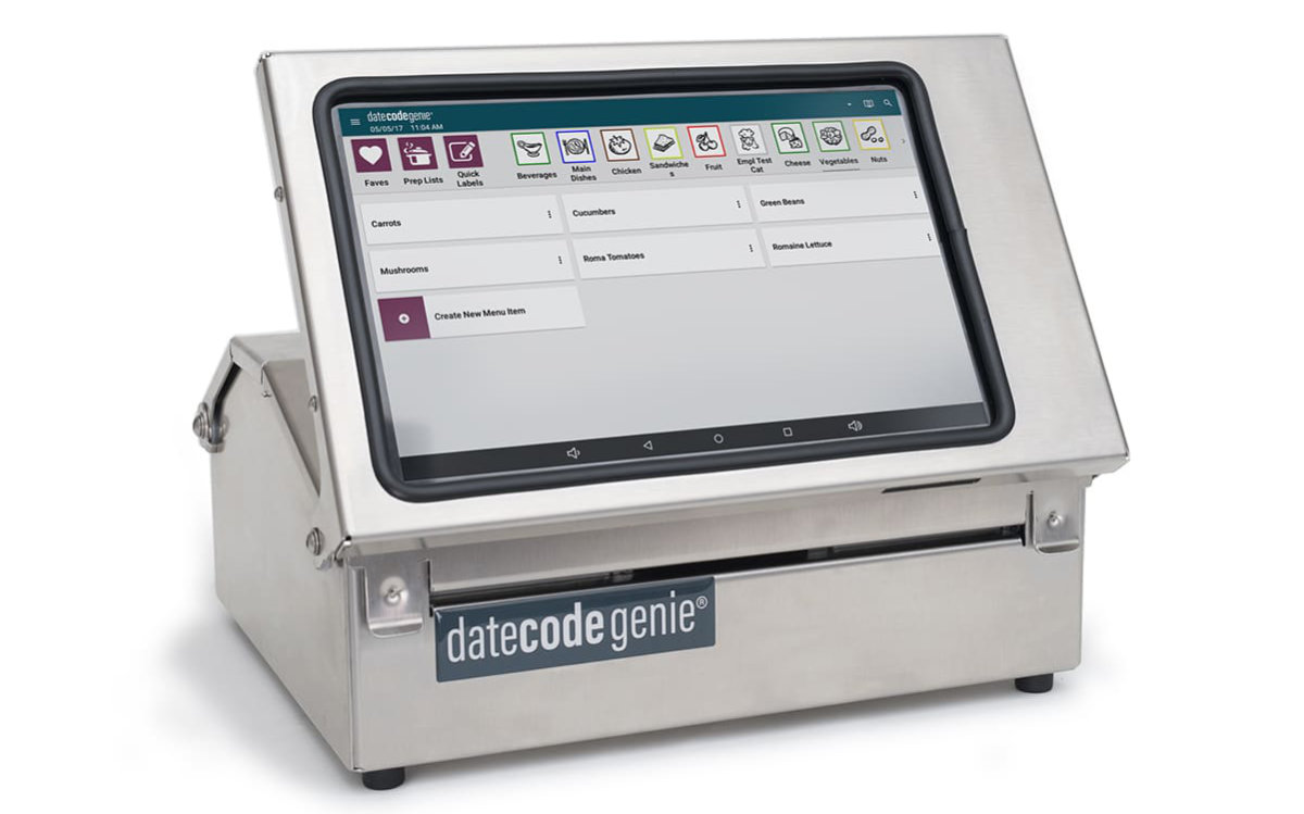 A portable solution that automates your labeling process for both front and back of house operations, especially for kitchens with limited space. The DateCodeGenie® Lite features a 10″ full-color touch screen with a protective easy-grip silicone case and a single, stand-alone printer that handles 2″ and 3″ labels with ease.